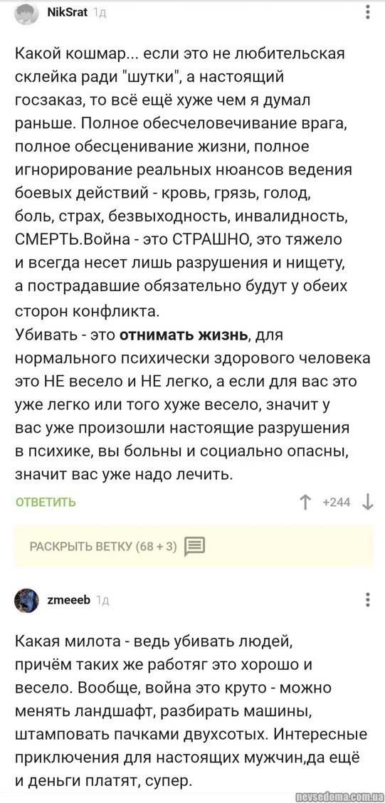 Тут нещодавно вже пробігала подібна історія, ось ще накид у продовження. У уявному світі вати - вони воюють не з нами, вони рефлексують на ту війну.