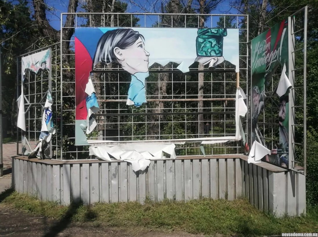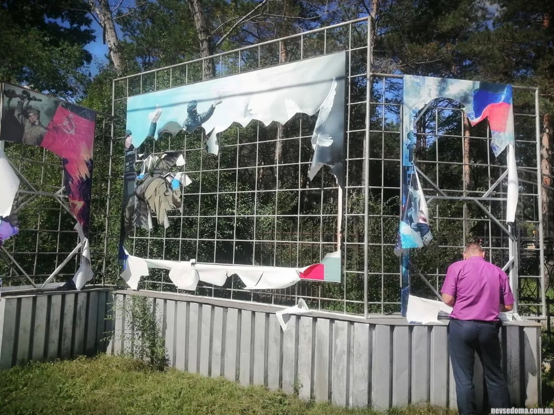Невідомі зіпсували Z-банери на вході до парку «Амурсільмаш» у Білогірську.