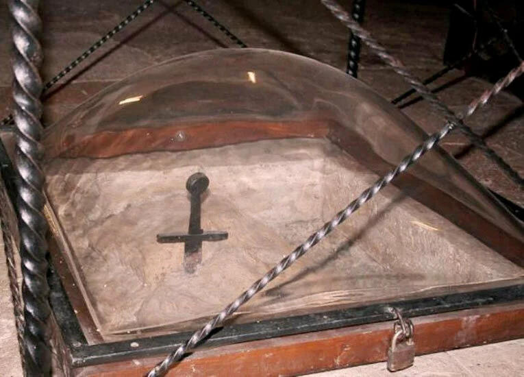 Адже такий меч справді існує. Виявлено артефакт у тосканському селі Кьюздіно, головною перлиною якої є стародавня капела Монтесепі. Збудована вона на місці хатини, де жив тосканський дворянин на ім'я Гальгано Гуїдотті, зарахований згодом до лику святих. За легендою саме він у XII столітті встромив меч у камінь. І це диво змінило життя егоїстичного себелюбця, змусивши його увірувати в бога і присвятити решту днів служінню та допомоги іншим.