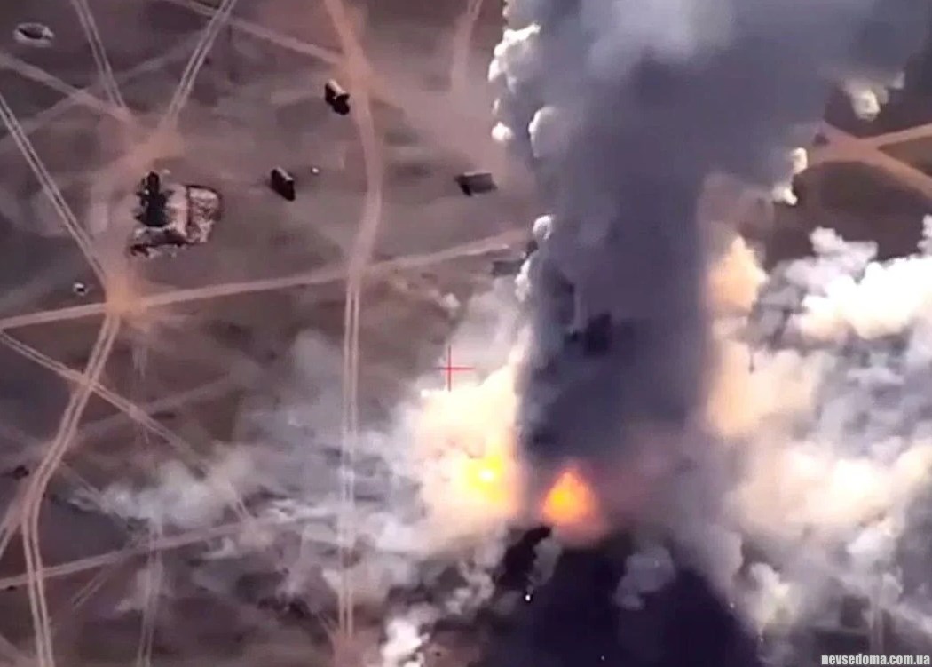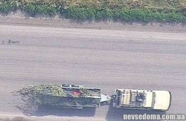 - Пускова установка-причіп російського БПЛА-камікадзе «Ланцет» із об'єктиву українського БПЛА.