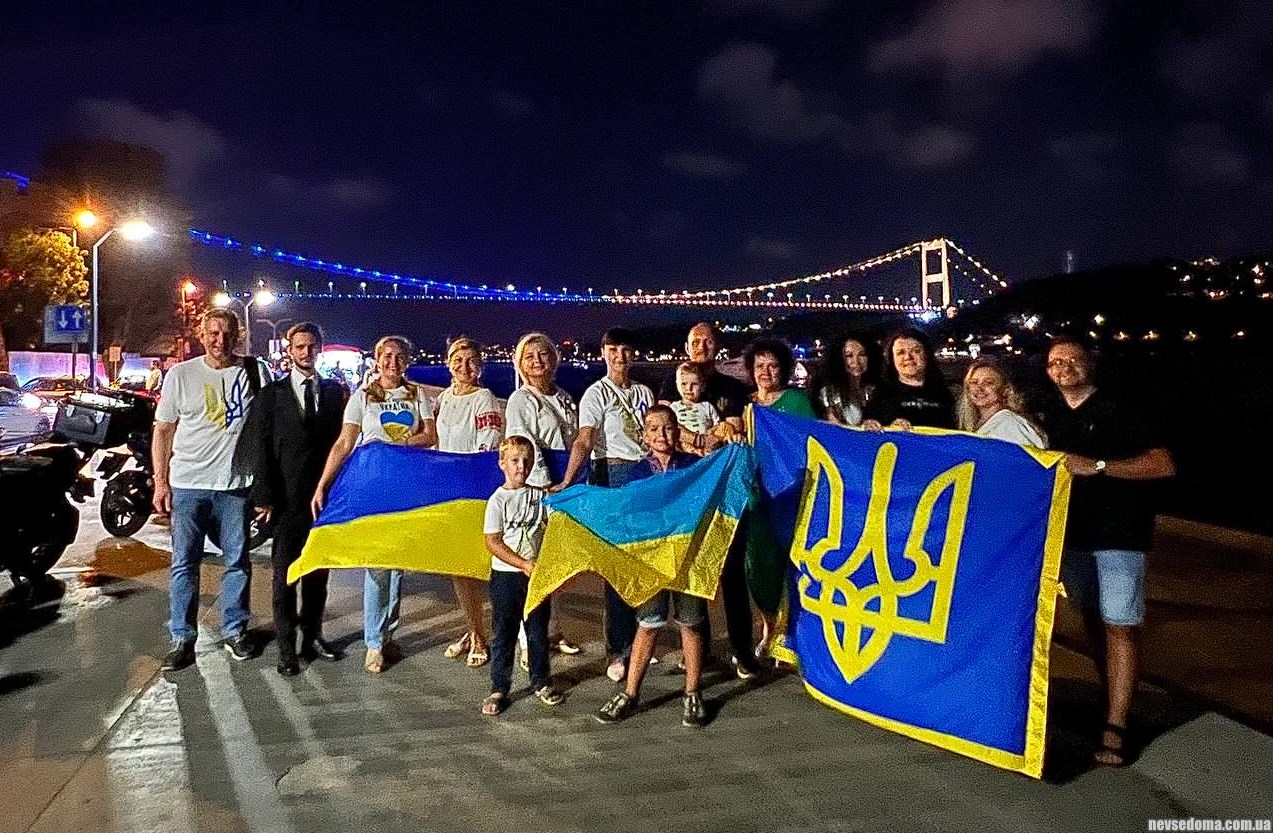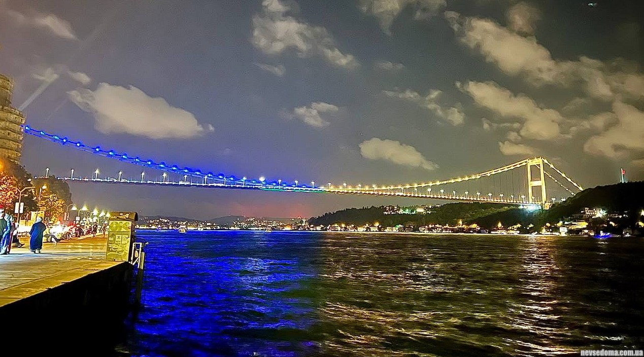 - Міст, що з'єднує Азію та Європу і названий на честь великого турецького імператора Фатіха Султана Мехмета, підсвітився квітами українського прапора.