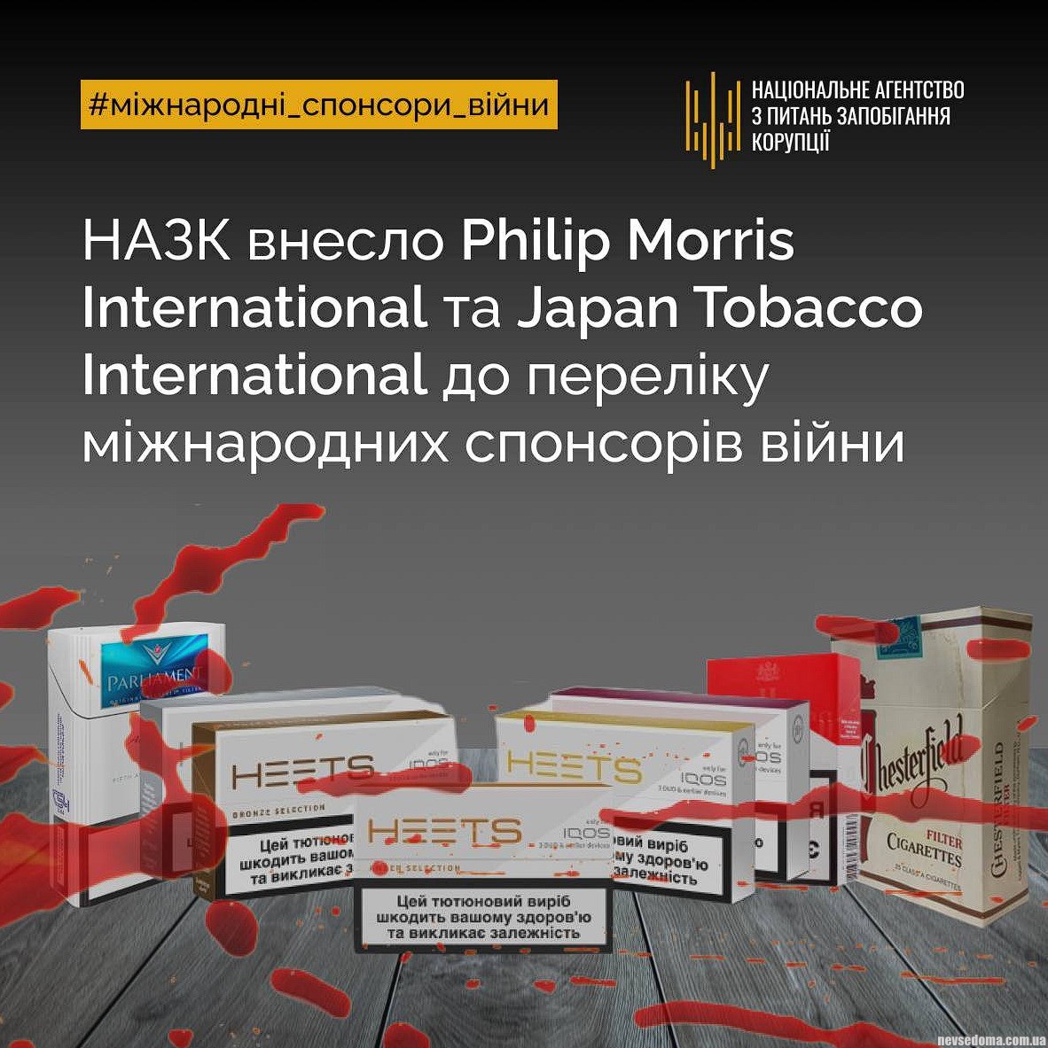 - Philip Morris International та JTI внесені до списку спонсорів війни, - НАЗК.