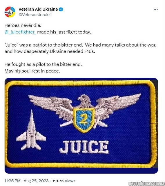 - Українські джерела підтверджують загибель пілота винищувача МіГ-29 ВПС України Juice.