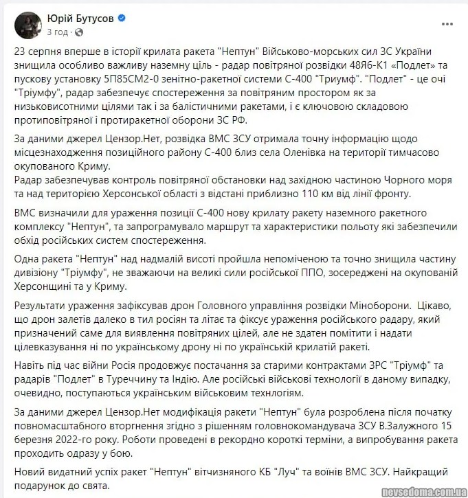 - Storm Shadow С-400 пищали зетики. Насправді це була українська технологія "Нептун"