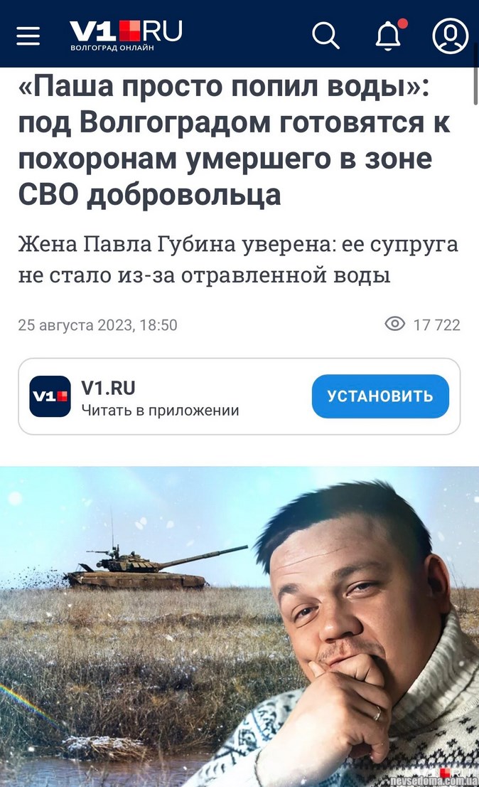 - «Паша просто попив води!» Родичі загиблого російського солдата скаржаться, що його отруїли вдячні українці, яких він приїхав денацифікувати.