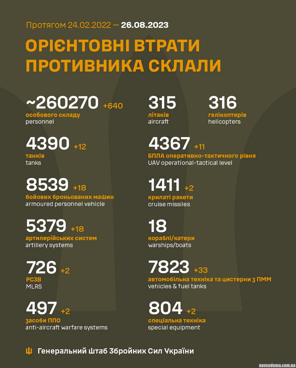 - Українські джерела стверджують, що 25 серпня український удар зазнав удару по базі 126-ї бригади берегової оборони РФ Чорноморського флоту.