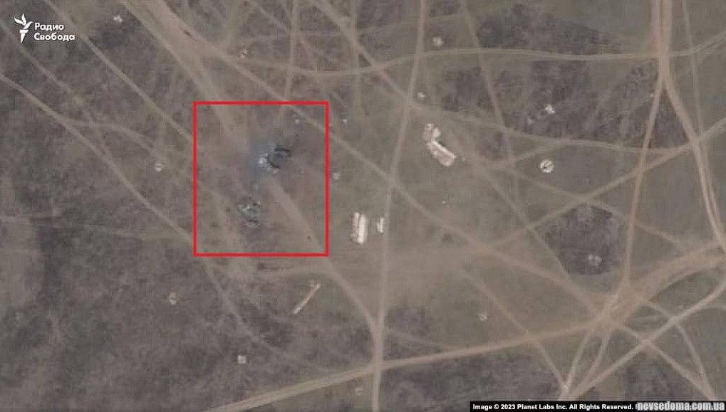 - Супутниковий знімок наслідків українського удару по російській базі ППО у Криму.