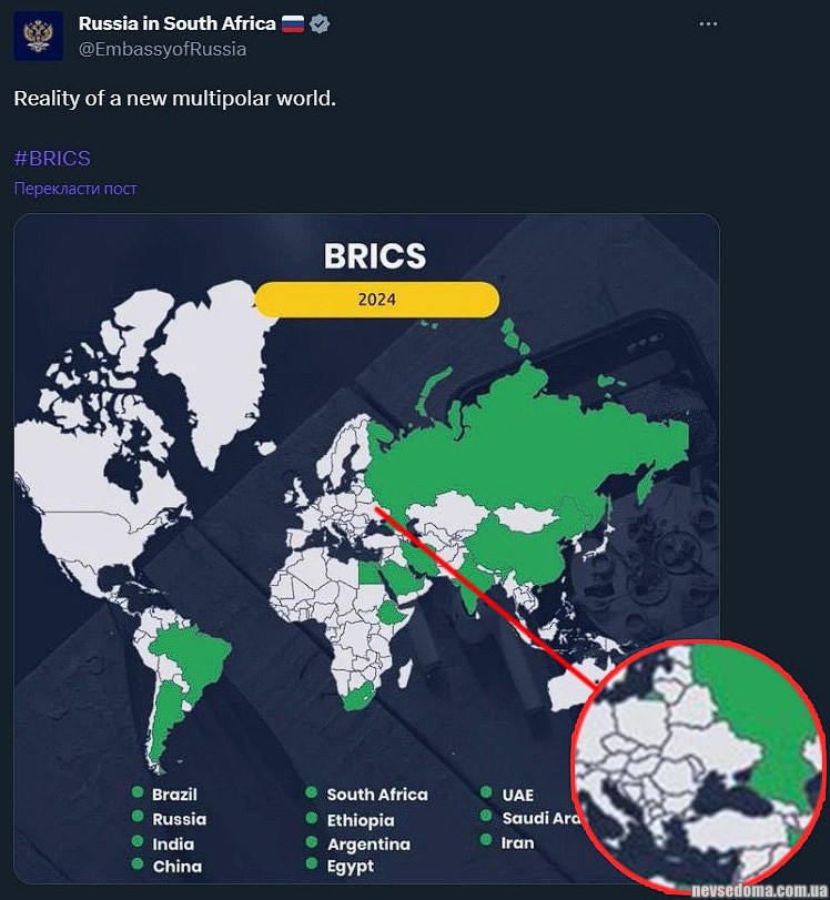 - Крим – Україна. В офіційному акаунті посольства Росії в ПАР застигли карту світу, де Крим належить до української території.