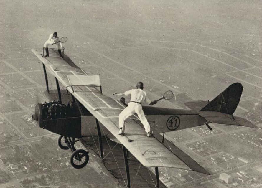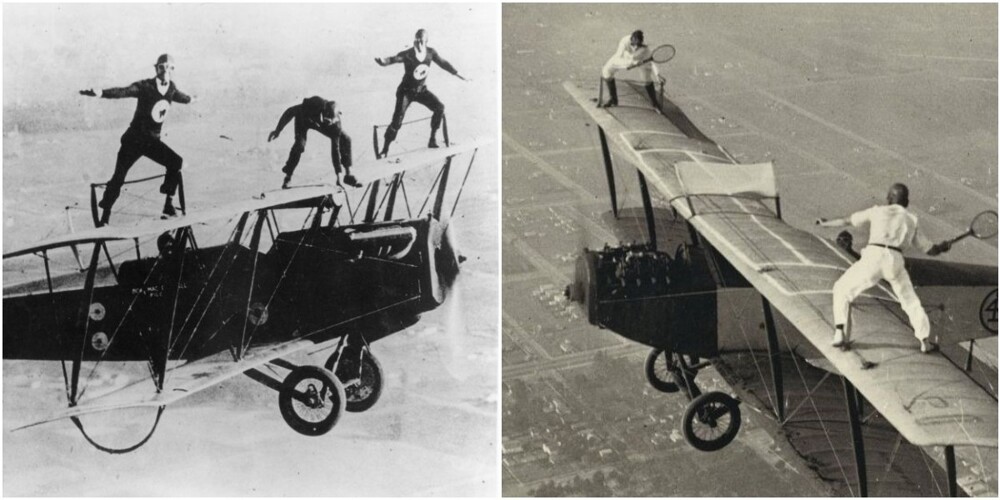 10. Каскадери Гледіс Рой та Іван Ангер грають у теніс на крилі літака