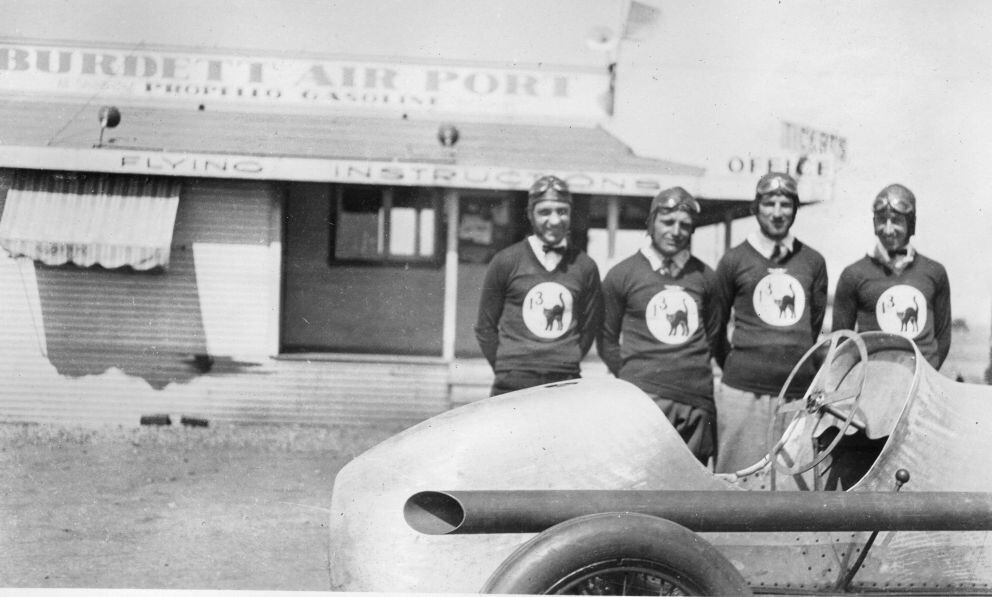 Команда "13 літаючих чорних котів" (13 Flying Black Cats) була заснована в 1925 році і базувалася в аеропорту Бердетт, Лос Анджелес. Історія почалася з трьох американських льотчиків: Бердетта Фуллера (одного з найвидатніших на той момент), Джека Фрая та Рональда (Бона) Мак-Дугалла. Об'єднавшись, у 1923 році вони відкрили аеропорт Бердетта та авіаційну школу. Вже у 1925 р. кілька випускників льотної школи, а також самі Фрай та Макдугал, об'єдналися в команду, здатну виконувати найекстремальніші трюки в небі. Так і з'явились "13 чорних котів".