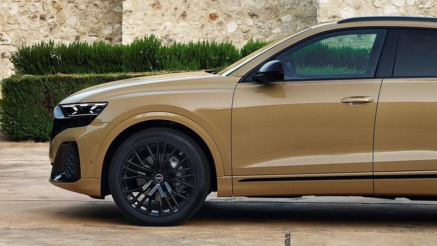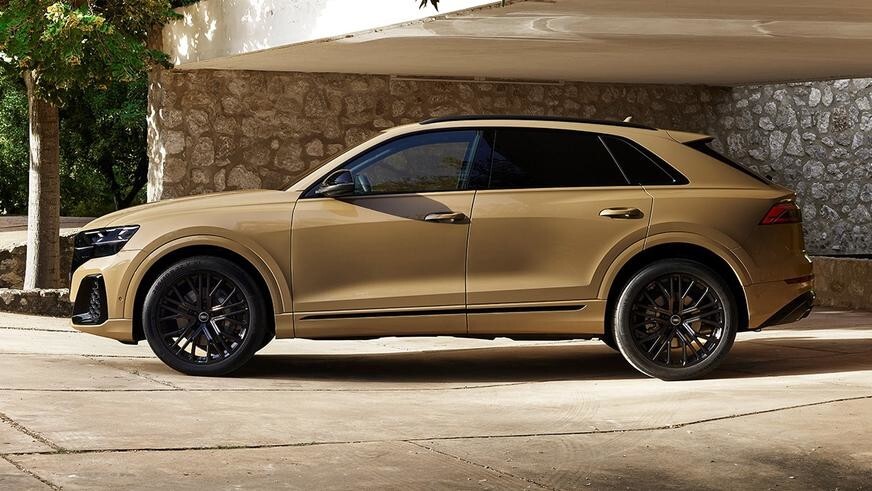 Для кросоверів розробили нову решітку радіатора з альтернативним наповненням для кожної з модифікацій та змінили пластику переднього бампера. Базова версія Audi Q8 відрізняється великою кількістю чорного. декору, а хромовані вставки доступні разом із пакетом S-line. Пропонується кілька варіантів дизайну колісних дисків, які тепер починаються з 20 дюймів, і кілька нових кольорів кузова.