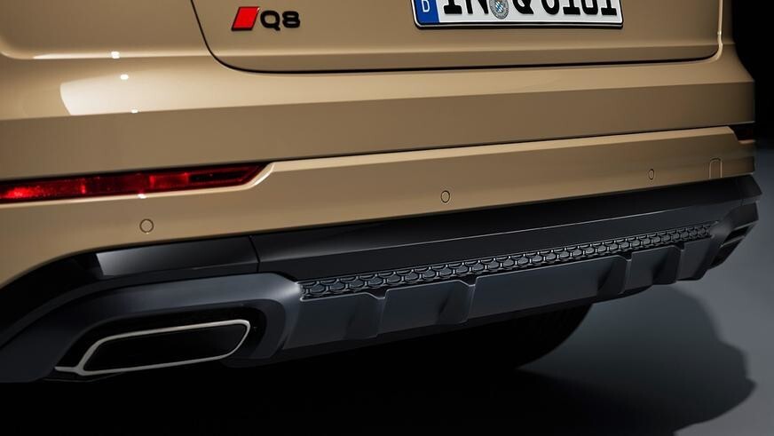 Задні ліхтарі отримають таку саму можливість, при цьому виконані вони з урахуванням органічних світлодіодів. На Audi Q8 переїхала цікава технологія, вже застосована на деяких інших моделях: ліхтарі будуть включатися самі, якщо до автомобіля позаду на дистанцію менше двох метрів наближається інший транспорт. Передбачається, що це знизить кількість аварій.