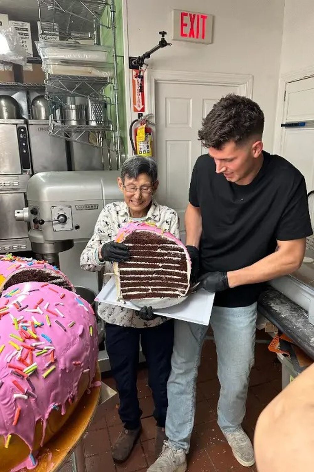 Кулінари Нік ДіДжіовані зі США та Лінн Девіс із Японії люблять дивувати шанувальників своєї творчості. Вони неодноразово потрапляли до Книги рекордів Гіннеса і не планують зупинятися Нещодавно кулінари спекли гігантський торт, який виглядає як пончик.