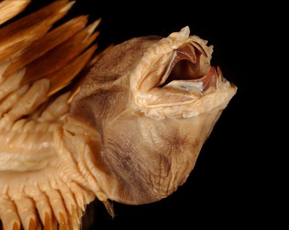 А те, що відомо, дуже цікаве. Те, що на фото нагадує голову Чужого, насправді висувна ковтка, яку хробак розгортає як телескопічну трубку, вирушаючи на полювання. Орган дуже значний, досягає 5 сантиметрів, що за загальної довжини тіла 20 сантиметрів дуже солідно.
