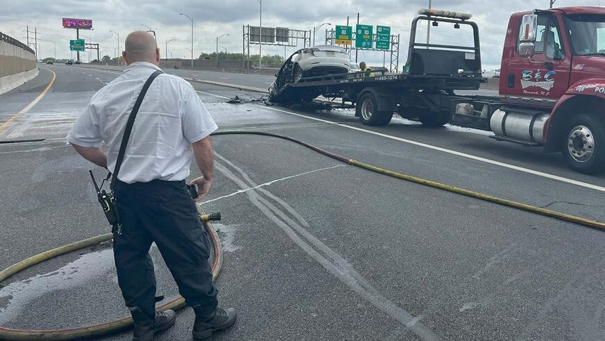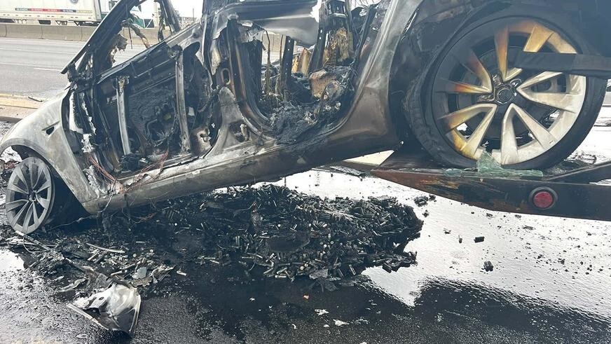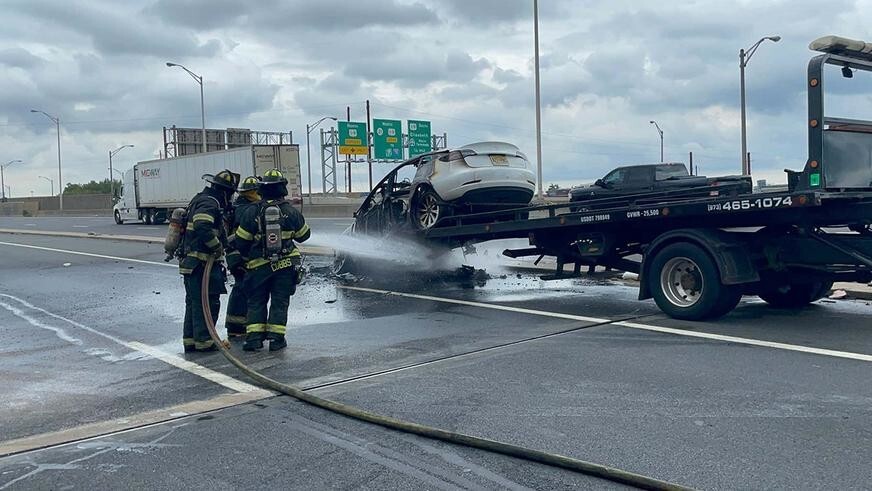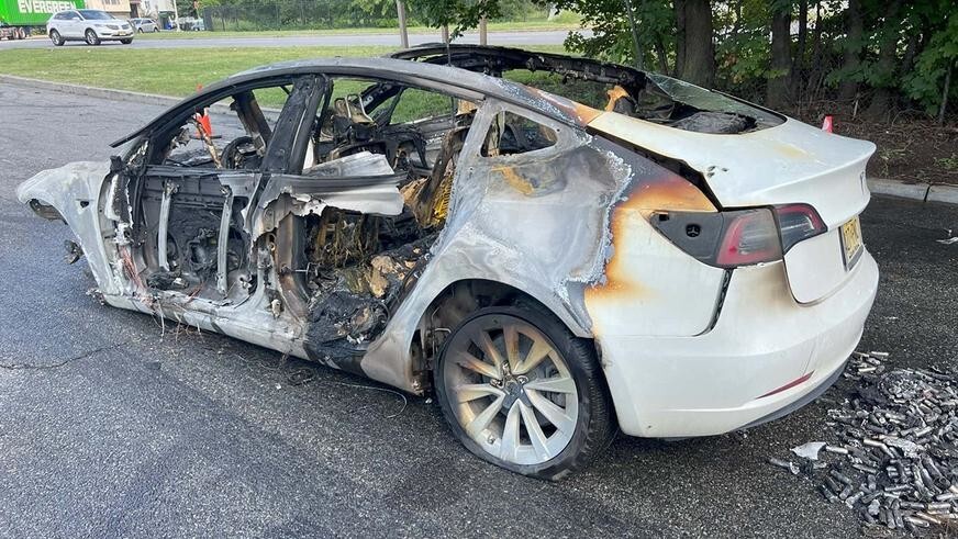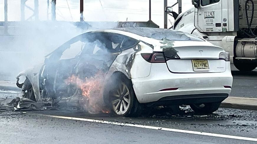 Потрапляння будь-яких предметів з проїжджої частини до розташованої в днище батарею може призвести до займання. Саме так і сталося у Ньюарке, штат Нью-Джерсі з електромобілем Tesla Model 3 2022 року випуску.