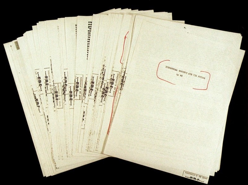 Тед був категорично проти прогресу, вважаючи технології злом, що й занапастить людство. І навіть розробив власний маніфест, що базувався на роздумах інших філософів. Його суть зводилася до того, що промислова революція та її результати згубні для людства, індустріально-технологічне суспільство нав'язує людині хибні, штучні потреби та цілі, позбавляючи його справжньої свободи та вганяючи у стрес і депресію, і знищує природу та видове різноманітність. Замість природних цінностей людина отримує замінники. індустрію розваг, телебачення, надлишок насильства та сексу. І для знищення цієї системи підходить тільки насильницький революційний шлях.