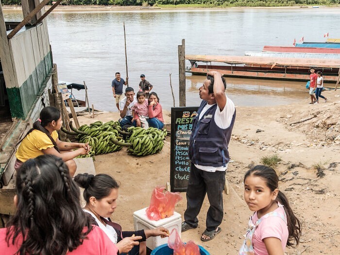 "Деякі зупинки були досить довгими, щоб встигнути прогулятися і подивитися на життя амазонських сіл, які мешкають тільки завдяки цим вантажним судам. Декілька сіл були великими - з парою вулиць, а в інших були магазинчики з місцевими продуктами, закусками, і навіть вином!" - пише фотограф.