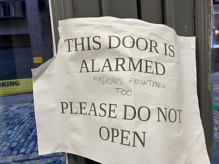 21. «Ці двері стривожені (обладнані тривожною сигналізацією)» - «Вікна теж налякані»