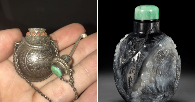У ХІХ столітті такі флакончики були дуже популярні серед любителів тютюну. Вони виготовлялися з напівдорогоцінного каміння та металів. Головною особливістю аксесуару є спеціальна маленька ложечка, що дозволяє зачерпувати потрібну дозу тютюну. Вперше флакончики з'явилися у Китаї, а потім перекочували і до європейських аристократів.