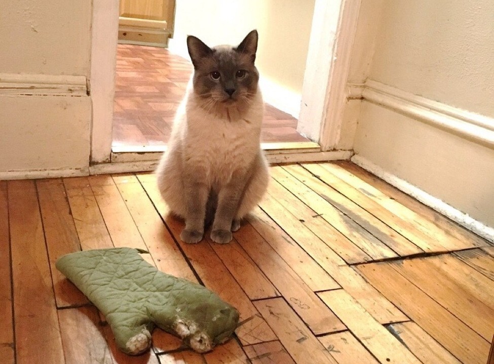 Кішки – природжені мисливці. Але спосіб життя і умови, що змінилися, не дозволяють радувати улюблених господарів мишами, птахами або хоча б ящірками. Тому пухнастим доводиться креативити, щоб милим знаком уваги довести своє кохання.