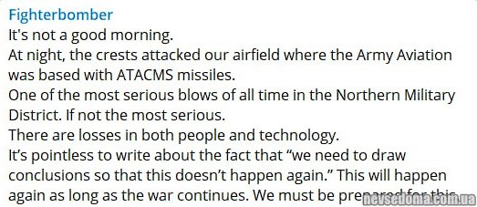 Російські військові джерела стверджують, що вчора ввечері українці завдали потужного удару по базах російської армійської авіації із застосуванням ракет ATACMS.