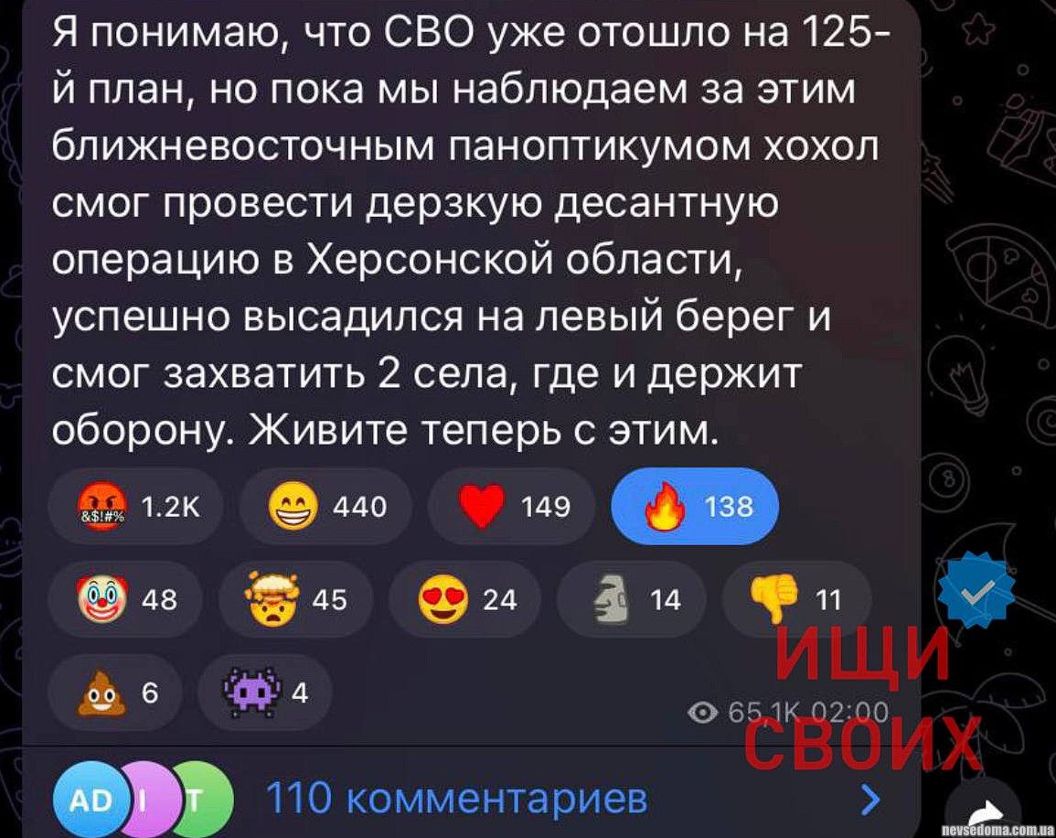 ▪️Росіяни зіпсують, що морська піхота ЗСУ провела десантну операцію і взяла під контроль село Пойма, зайнявши там кругову оборону, і наблизилася до північних кордонів села Піщанівка