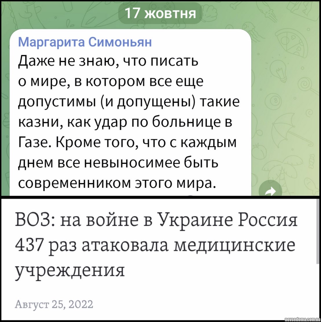 - Схід. Як пропаганда вкинула про удар по лікарні і чи то 500, чи то 800 трупів. Виявилося, що вибух був на парковці, вирви немає, жодних серйозних пошкоджень, окрім згорілих авто. Але ошуканих тепер не зупинити та не переконати.