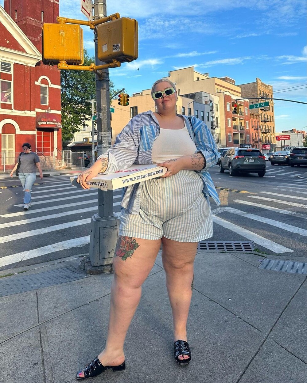 У всіх свої уявлення про ідеальну фігуру. Еббі з Нью-Йорка вважає за краще не слухати негативних коментарів про себе в соцмережах, адже вважає себе ідеальною. Вона фотографується із коробками з-під піци та іншою їжею, не збираючись відмовляти собі в задоволенні.