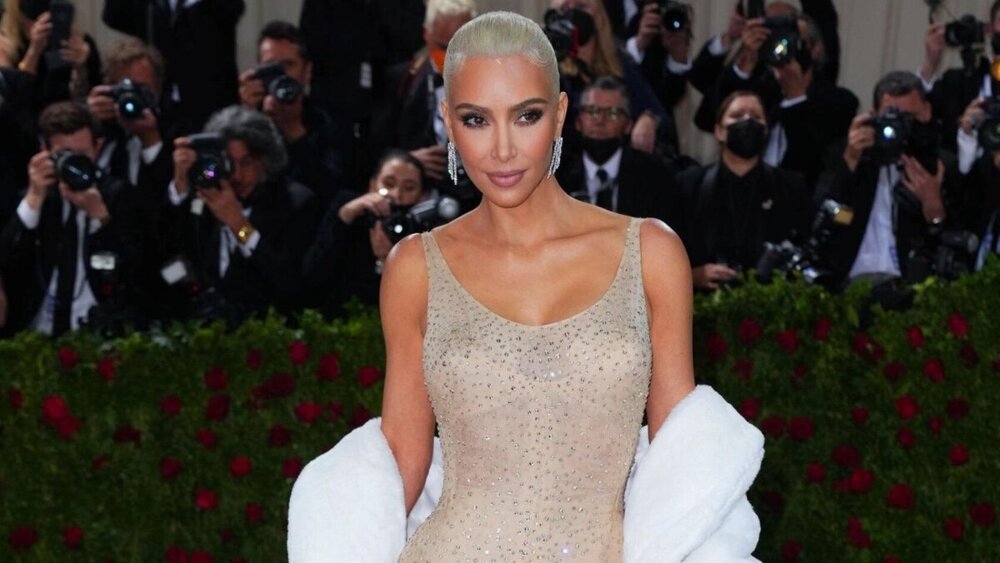 Не впоралася Кім і загальним чином. Пофарбоване волосся варто розпустити, а губи нафарбувати червоним, щоб відтворити образ Мерилін. Зализаний хвіст та нюдовий макіяж назвали стилістичним провалом. І якщо з масштабом провалу я хочу посперечатися — все не так погано, як намагаються показати, то з тим, що образ недопрацьований — погоджуся. Сукня дуже жіночна, тому краще вона виглядала б не з "лисою головою", а з кучерями.