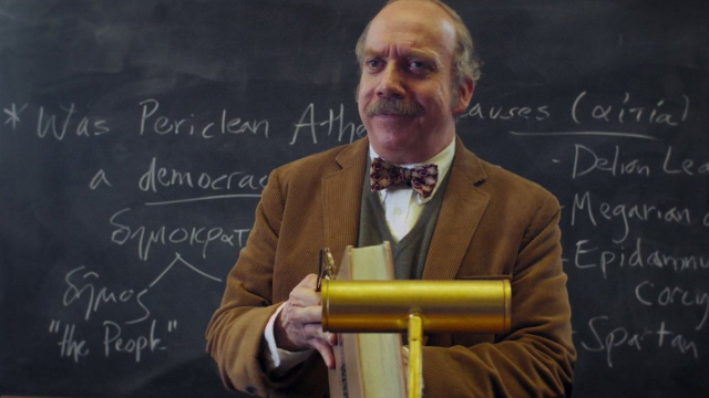 Двічі номінований на «Оскар» за роль другого плану Пол Джаматті виконує головну роль у різдвяній комедії «Залишені». Граючи не найулюбленішого викладача у закритій школі, він, як завжди, не витягує з глядачів співчуття, відзначають критики та додають: