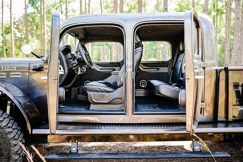 Power Wagon забезпечує максимальний комфорт. Завдяки бічним підніжкам з електроприводом, вхід в автомобіль гранично спрощений. У нього є навіть розстібні двері, як у вкритого вуглецевим. волокном Mercedes-AMG G63 від Mansory, однак, на відміну від нього, складання DPW зберігає неповторну індивідуальність «простої та надійної робочої конячки».