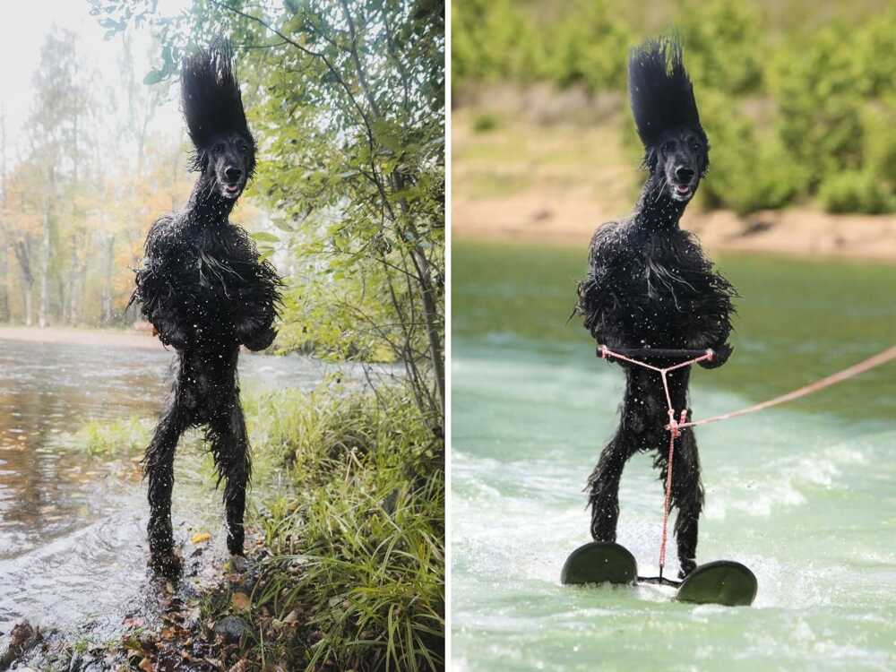 Наскрізь мокрий афганський хорт. Стрибає