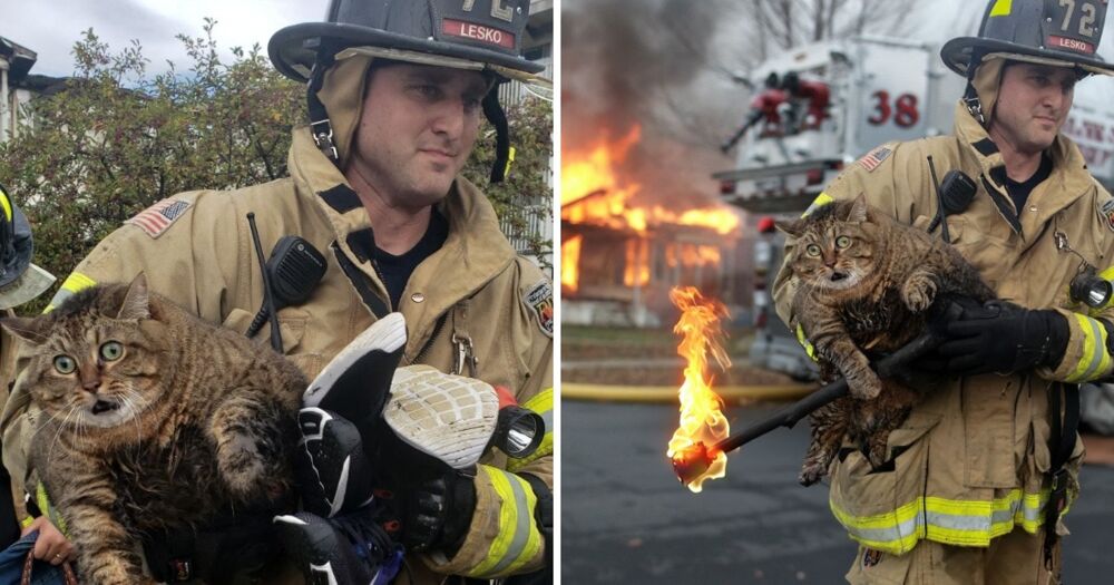 Котика врятували з палаючого будинку