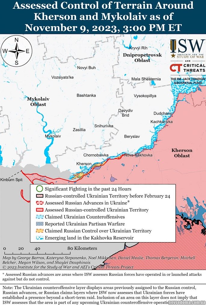 ▪️Українські війська встановили контроль над новими позиціями у Кринках та продовжували атакувати в районі Заплави, Піщанівки та Підстепового;