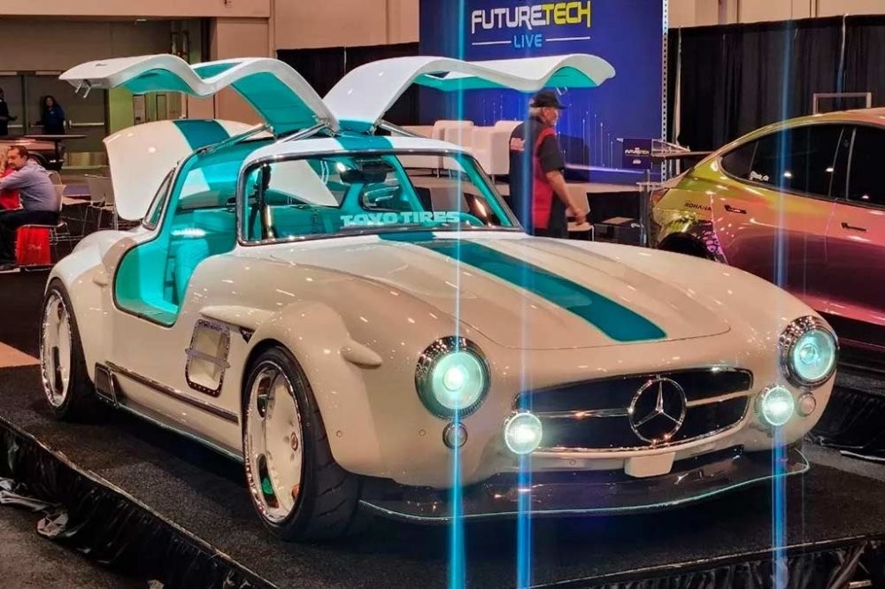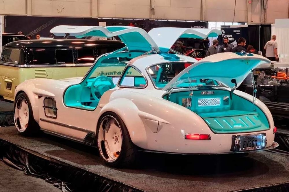 Електромобіль був побудований на базі стандартної Tesla Model 3, але його кузов візуально повторює легендарне купе Mercedes-Benz 300 SL Gullwing з дверима, що піднімаються. Це найдорожча Tesla і одночасно найтехнологічніший класичний автомобіль з автопілотом, додатком, оновленнями та доступом до зарядних станцій Supercharger.