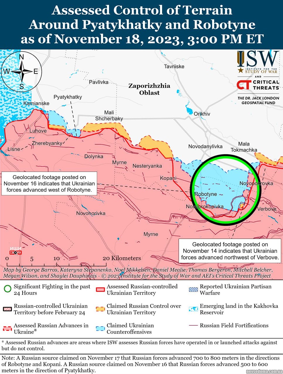 ▪️Також українські сили атакували між Новофедорівкою (14 км на північний схід від Роботино) та Вербовим.