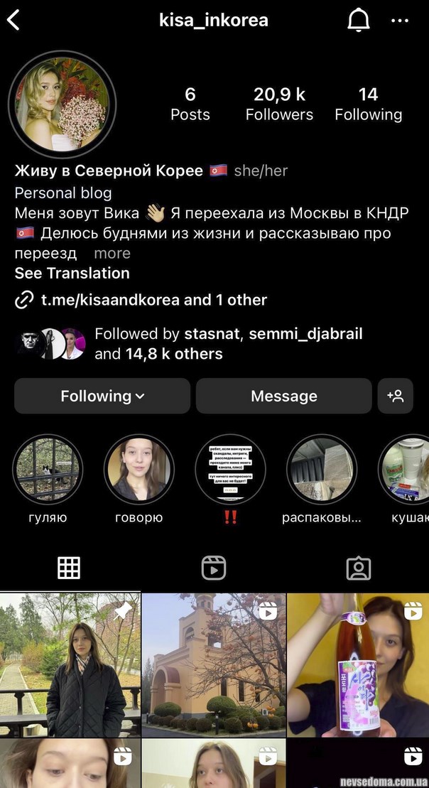 Відчуття що дружина якогось посла, консула в Північній Кореї та розповідає що не так уже й погано там… Самі зацініть, передплатників на вході багато, хоча обліковий запис новий. Не все так погано в Північній Кореї, навіть православний храм є і хурма з кокаколою