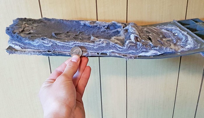 17. "Моя сусідка скаржилася, що її сушарка погано працює. Перевірив фільтр, і ось скільки там всього! Монетка для порівняння"