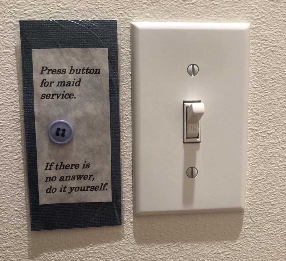 "Натисніть кнопку для виклику покоївки. Якщо не відповідає, то робіть самі".