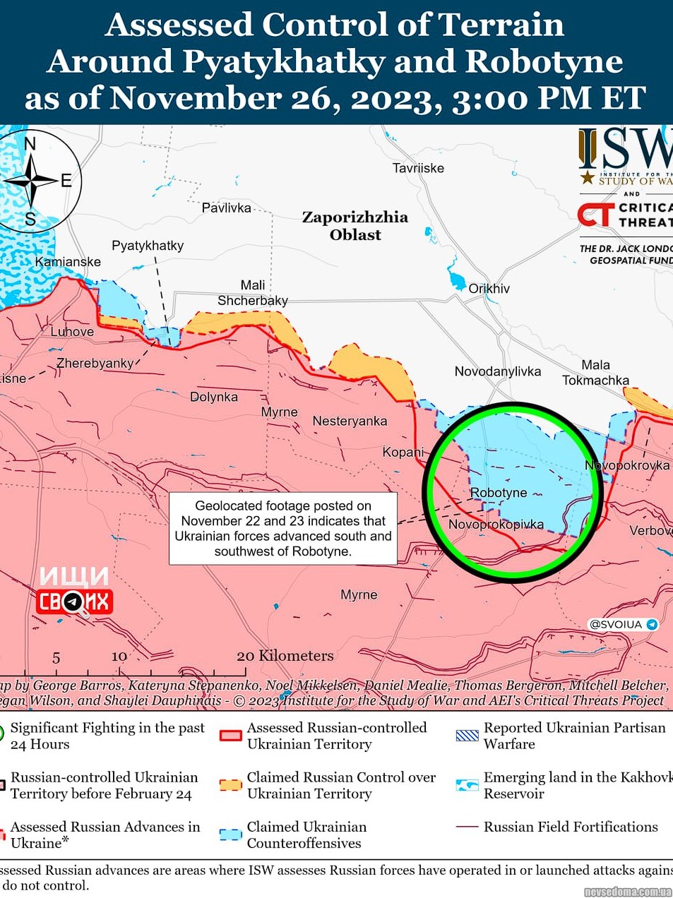 Українські сили просунулися на півкілометра у напрямку Новофедорівки (15 км на північний схід від Роботино), - ISW, ситуація на фронті.