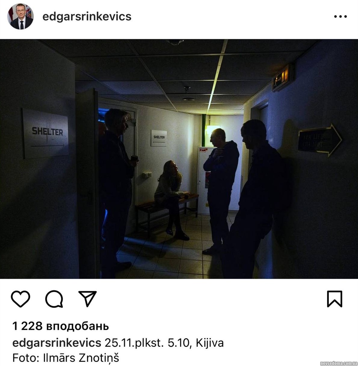 Едгарс Рінкевичс, який перебуває з візитом у столиці, виклав фото з укриття, яке підписав «25 листопада, 05:10 ранку, Київ».