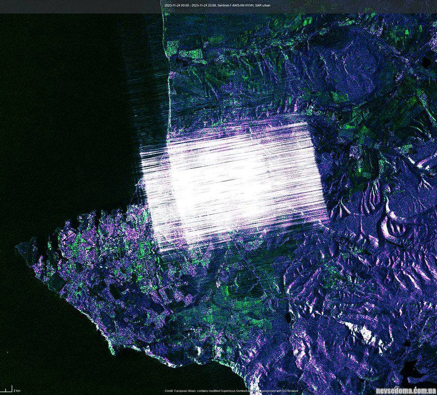 - Сильні радіолокаційні перешкоди над Севастополем, Крим, на супутникових знімках.