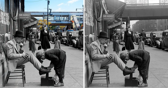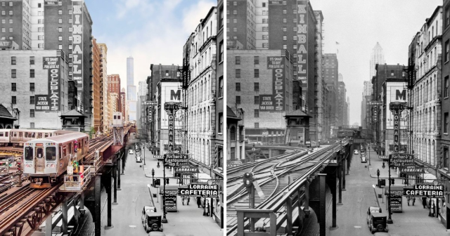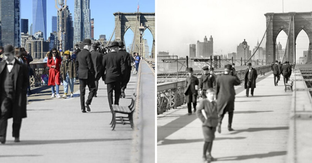 Пропонуємо подивитися на цікаві роботи фотографа зі США Марка Херша. Він збирає старі архівні фотографії, на яких відображені люди та міста, та поєднує їх зі своїми знімками цих же місць нашого часу. У результаті виходять круті колажі, що показують нам, як швидко змінюється навколишній світ.