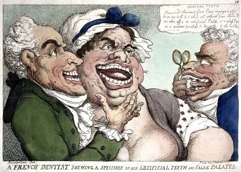 Після «лікування» зубів багато багатіїв до 40-50 років залишалися з голими яснами і потребували протезування. Але кілька сотень років тому відновлення зубного ряду хоч і було неймовірно дорогим, але проводилося найпримітивнішими методами. Ні про які імпланти і нарощування не йшлося, а в ході були звичайні вставні щелепи.