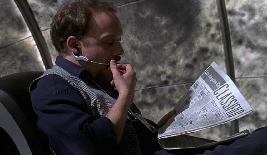 14. Примітний момент. Коли Труман починає все більше підозрювати про те, що з його життям щось не так, ми можемо побачити співробітника знімальної групи, який уже підшукує собі нову роботу, бо розуміє, що шоу, швидше за все, закриють.