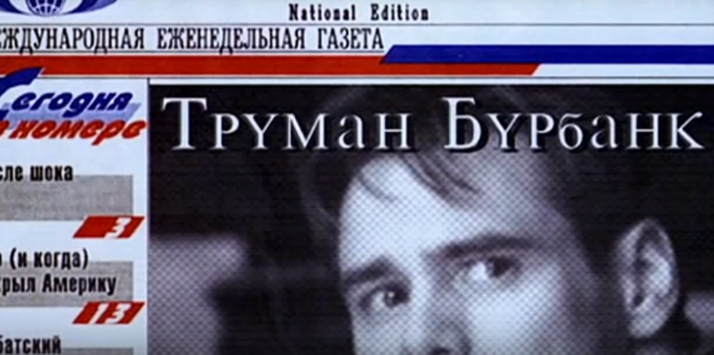 15. Шоу Трумана дивляться у всьому світі. Але ви тільки погляньте на цей заголовок із газети. Ну невже не можна було якось краще підготуватися? Більше того, його прізвище писатиме не як Бурбанк, а Бербанк. Втім, американці частенько перекручують слова.