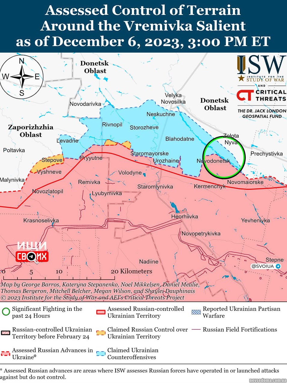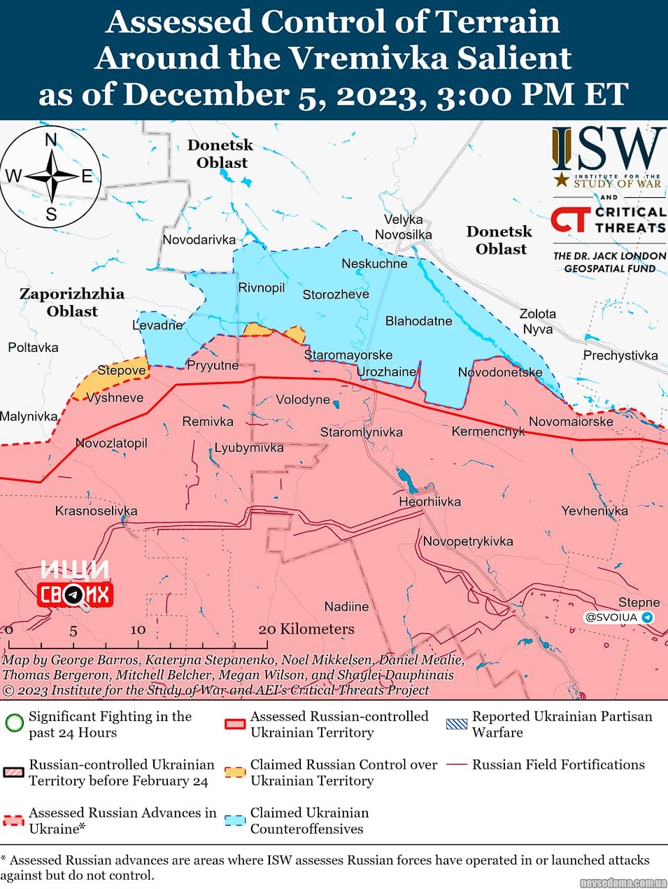 ▪️Українські війська відбили напад російських військ у районі Новодонецьке (15 км на південний схід від Великої Новосілки) та на південь від Золотої Ниви (11 км на південний схід від Великої Новосілки).