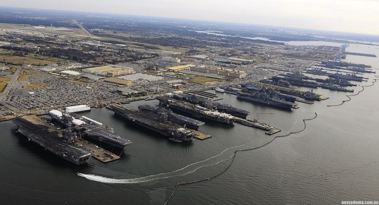 Норфолк — найбільша військово-морська база у світі із 10 причалами загальною довжиною близько 20 кілометрів.
