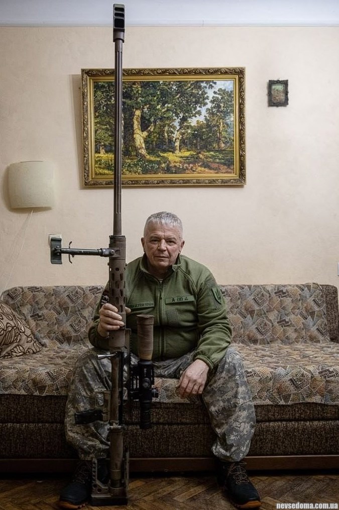 З'явилося фото того ж таки снайпера. В'ячеслав Ковальський 58-річний колишній бізнесмен та стрілець-спорстсмен, а нині снайпер СБУ. Попередній рекорд світу був 3,5 км 🔥