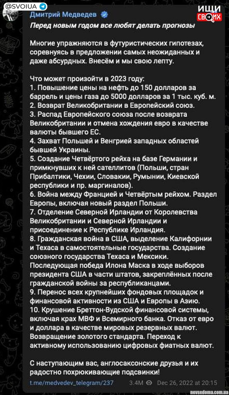 - Геніальний прогноз Медведєва на 2023 рік